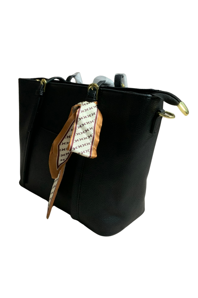 This black imported tote is built for everyday use without losing its elegance. The soft, high-quality leather gives it a premium feel, while the long shoulder strap keeps it comfortable to carry. Inside, you get a roomy main compartment with a secure zipper, an inner zip pocket, and a partition to keep everything organized. The front ribbon adds a subtle stylish touch.