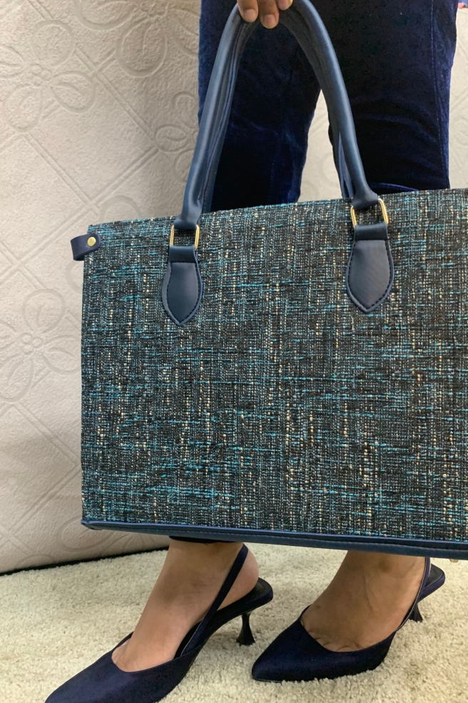 This bag has a refined woven texture in blue and gold that instantly elevates your look. The leather-look handles add a polished finish, while the roomy interior gives you plenty of space for your daily essentials. It’s sturdy, stylish, and easy to pair with both casual and work outfits a simple upgrade that looks good every day.